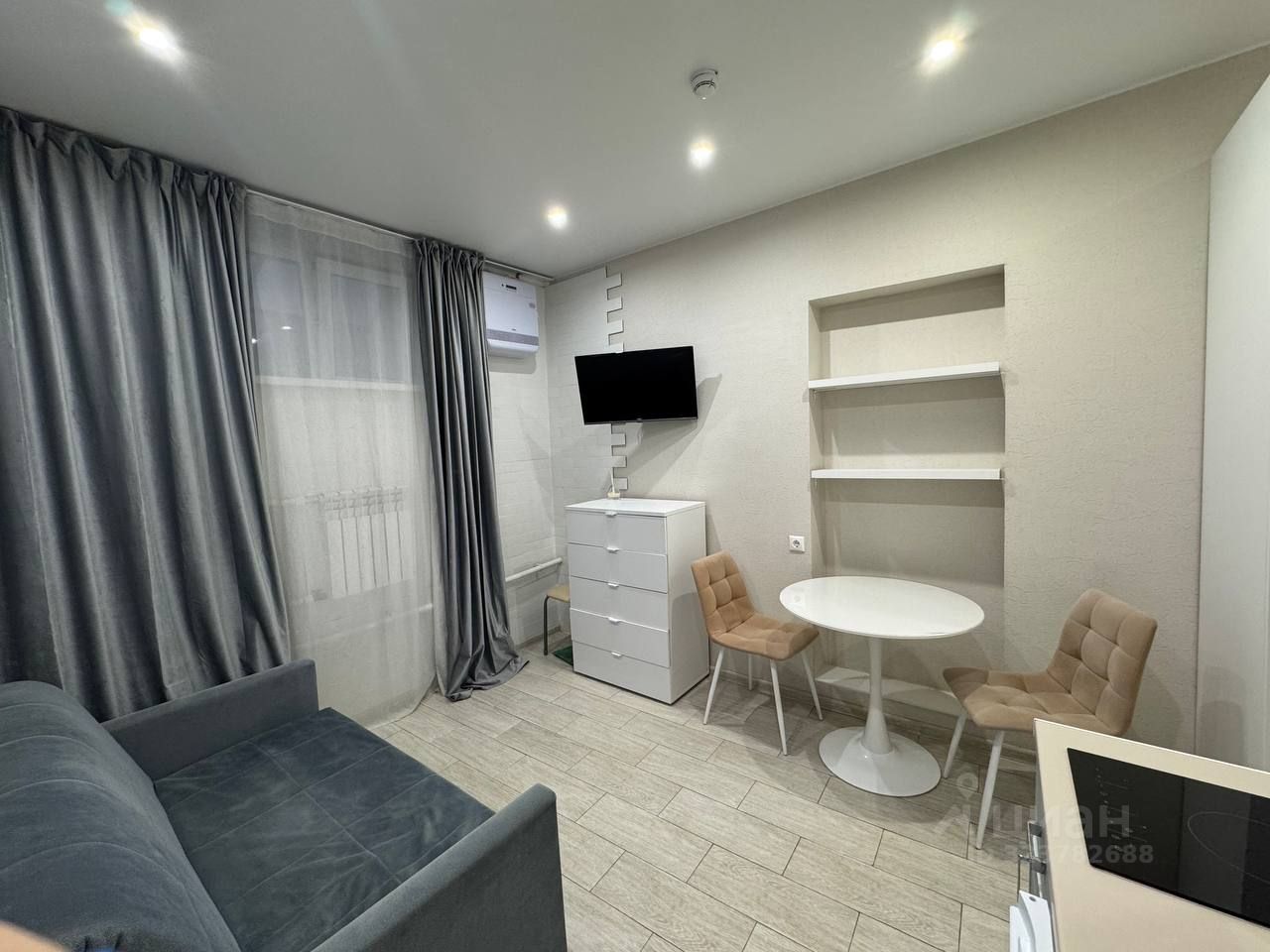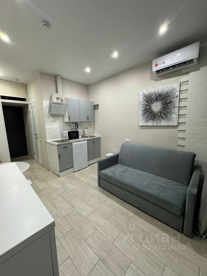 В квартире сделан качественный евроремонт. Пространство студии продумано до мелочей для вашего удобства. Установоен кондиционер и приточный бризер. Санузел совмещенный, современный и функциональный. Окно выходит во двор, поэтому в квартире всегда тихо и спокойно. Апартаменты готовы к заселению и не требуют дополнительных вложений.