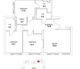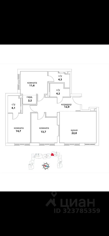 Кухня-гостиная 22 м2 плюс 3 отдельные спальни с ремонтом и полной отделкой по авторскому дизайн-проекту. 3 сан.узла. Мастер спальня с собственным сан узлом и нишей для гардеробной комнаты. Вторая спальня также с собственным сан.узлом.