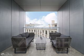 Над внутренним пространством работал визионер Гарри Нуриев, создавший атмосферу частного ателье, где каждая деталь — произведение искусства. Фасад из матового стекла наполняет интерьеры мягким, студийным светом круглый год, а ваша личная терраса на крыше дарит ощущение парижской легкости с видом на "питерские" крыши и легендарную высотку на Котельнической.