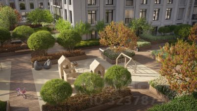 Центральная площадь, расположенная между домами будет включать арт-объекты, сухой фонтан, зоны отдыха, на ней будут проводиться праздники, фестивали и ярмарки.