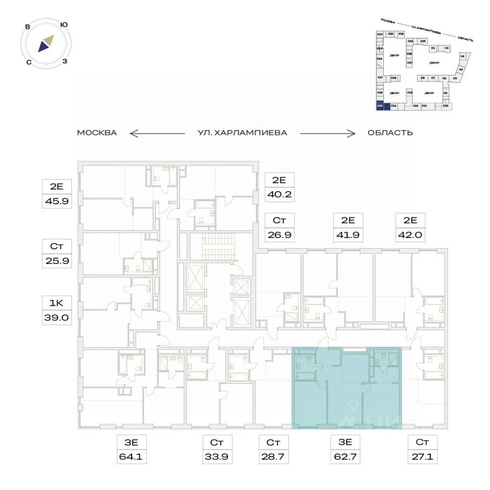 ЖК "Детали" | 3-комнатная квартира, 62.70 м², 14-й этаж.