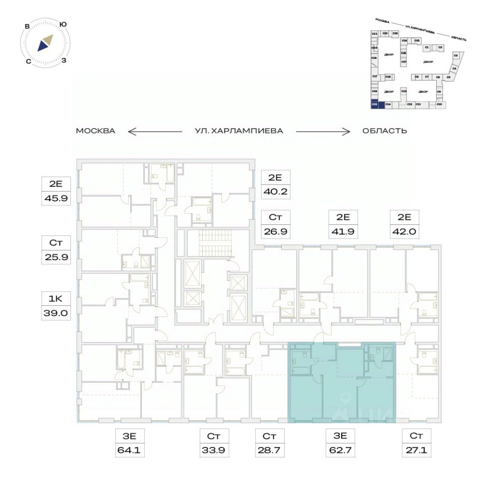 ЖК "Детали" | 3-комнатная квартира, 62.70 м², 15-й этаж.