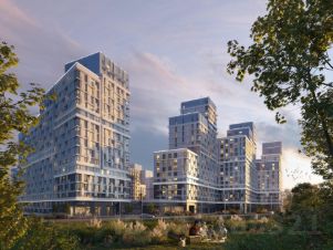- Безбарьерная среда с многоуровневым ландшафтным парком, детскими площадками, зонами для отдыха и арт-объектами