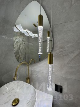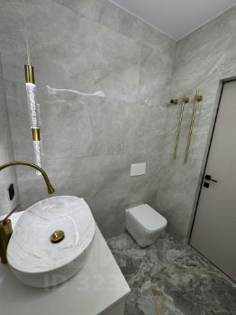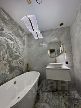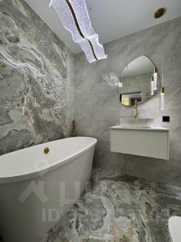 ~В ванной комнате итальянский широкоформатный керамогранит , отдельностоящая ванна из литиевого мрамора для вашего релакса , несколько сценариев освещения , теплый пол , зеркало с системой антизапотевания , скрытый полотенцесушитель .