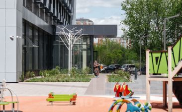 В стилобате на первом этаже отведено под коммерцию 1100 кв.м площадей. Предусмотрены коворкинг, прачечная, кафе, детская игровая комната, фитнес-зал со SPA-зоной. На подземных этажах расположены кладовые помещения для хранения сезонных вещей. Для автовладельцев предусмотрен подземный паркинг на 864 места. Территория комплекса закрыта для посторонних и охраняется. Предусмотрены игровые и спортивные площадки, зоны отдыха.