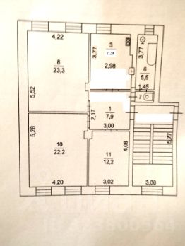 Свободная продажа! Полная стоимость в ДКП. 3-к квартира на 2 этаже 2-этажного кирпичного дома 1939 г.п., перекрытия железобетонные, общая площадь 83 кв.м., жилая 57,7(23.3, 22,2 и 12.2), кухня 11,25, комнаты изолированные, потолки 3,20 метра, окна кухня и большая комната на восток, две комнаты на запад.