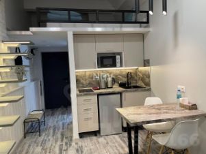 Площадь первого уровня 19,1 кв.м + второй уровень 5 кв.м, высота потолка 4,2 метра.