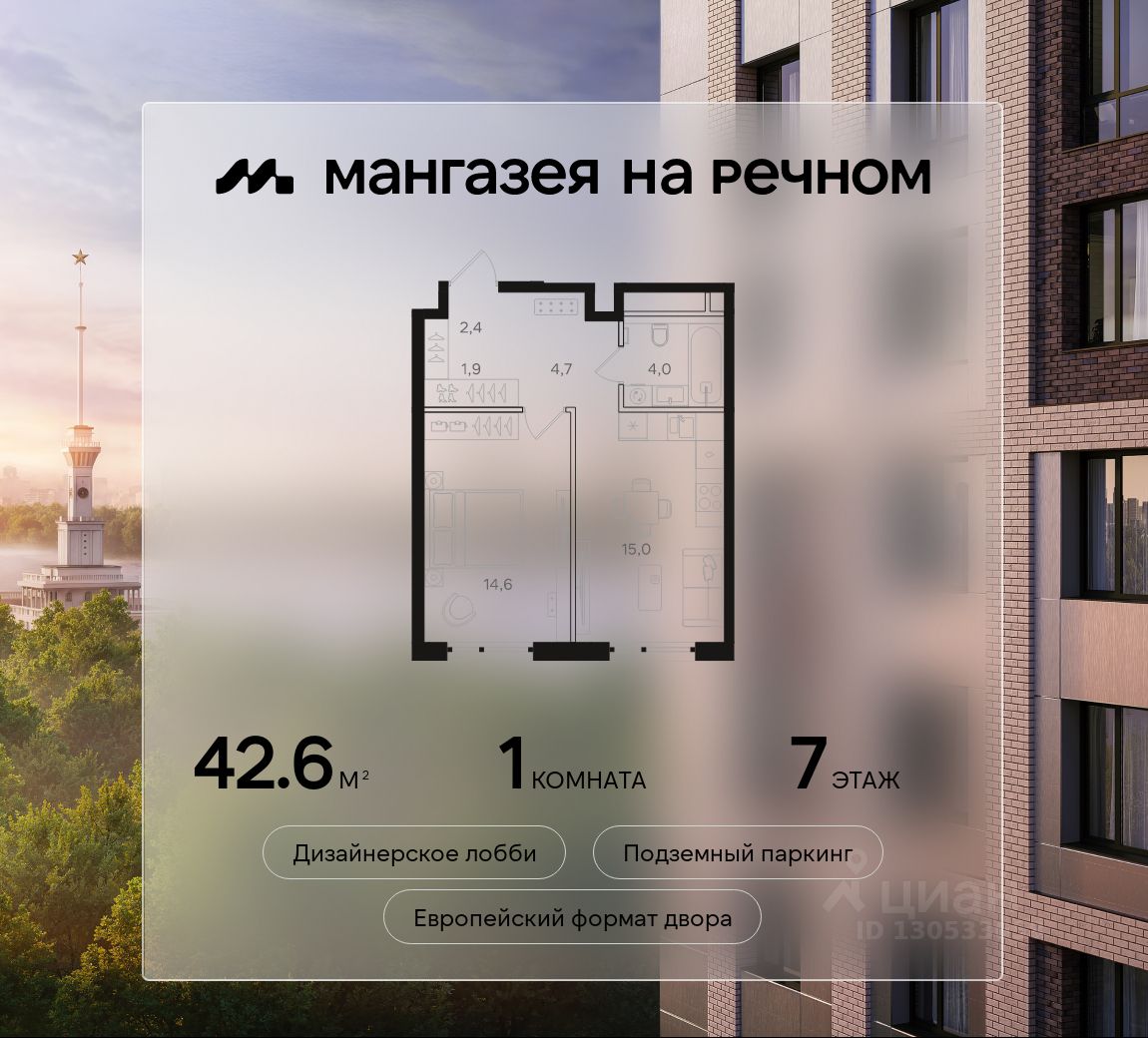 "Мангазея на Речном" расположена рядом с набережной, парками и территорией Северного речного вокзала. Первая очередь проекта два дома 12 и 24 этажа с приватным двором, ландшафтным благоустройством и инфраструктурой только для резидентов: кинозал, коворкинг, переговорные, зоны отдыха и комнаты для занятия фитнесом.