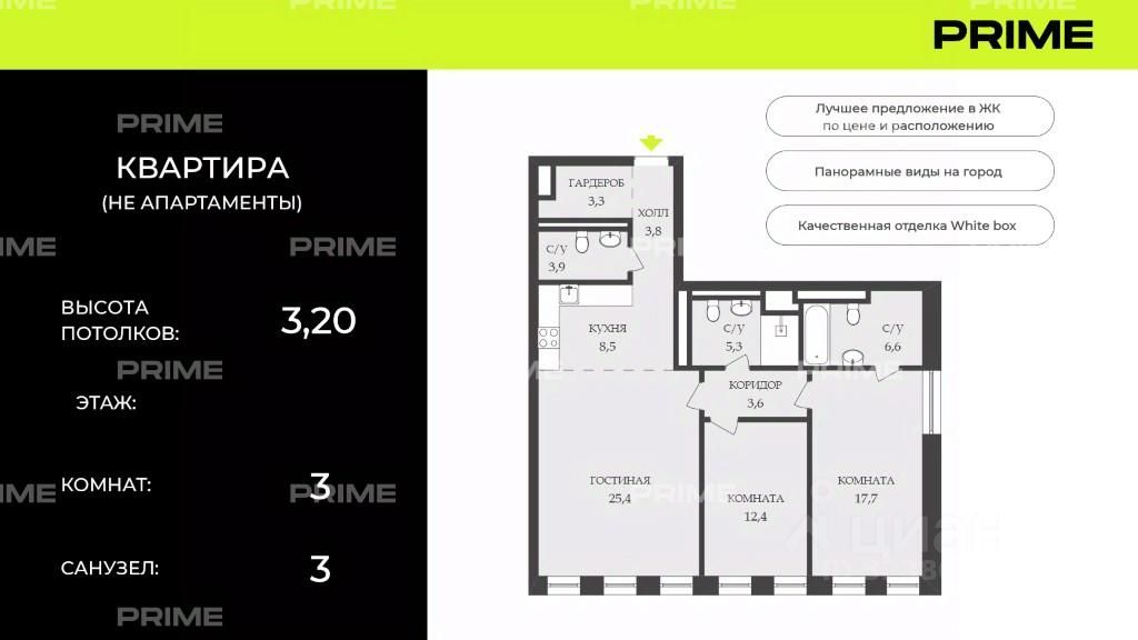 • Квартира расположена в модуле А, 6 этаж из 17 — оптимальная высота для открытых, панорамных видов и приватности.