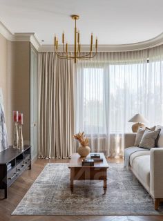 Большая гостиная, совмещенная с обеденной зоной и кухней 27м2