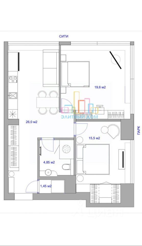 Объект 540911. Продается видовая 2 к квартира в элитном ЖК Капитал Тауэрс.