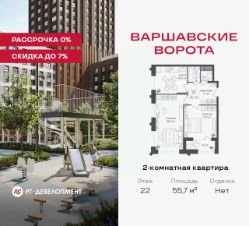 Продаётся 2-комнатная квартира 55,7 кв.м. в МФК "Варшавские ворота" на 22-м этаже 30 этажного дома. МФК "Варшавские ворота" — это точка баланса между природой и городом, стилем и функциональностью, жизнью сегодня и устойчивым будущим.