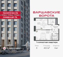 Продаётся 1-комнатная квартира 40.1 кв.м. в МФК "Варшавские ворота" на 3-м этаже 8 этажного дома. МФК "Варшавские ворота" — это точка баланса между природой и городом, стилем и функциональностью, жизнью сегодня и устойчивым будущим.