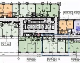 Особое внимание в Wave уделено интерьерам лобби, выполненным в современном стиле с яркими акцентами. Стильное пространство разделено на несколько зон: ресепшен, зона ожидания с Wi-Fi и мягкими креслами, колясочная и лаконичный лифтовый холл.