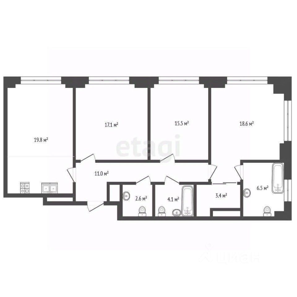 • Удобная планировка: просторная кухня-гостиная, 3 спальни, 3 санузла и гардеробная.