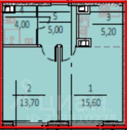 Планировка — спальня 13,7 м² и кухня-гостиная 20,8 м².