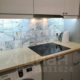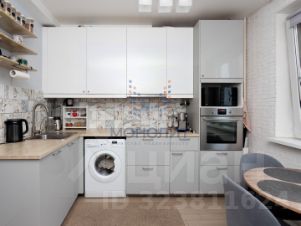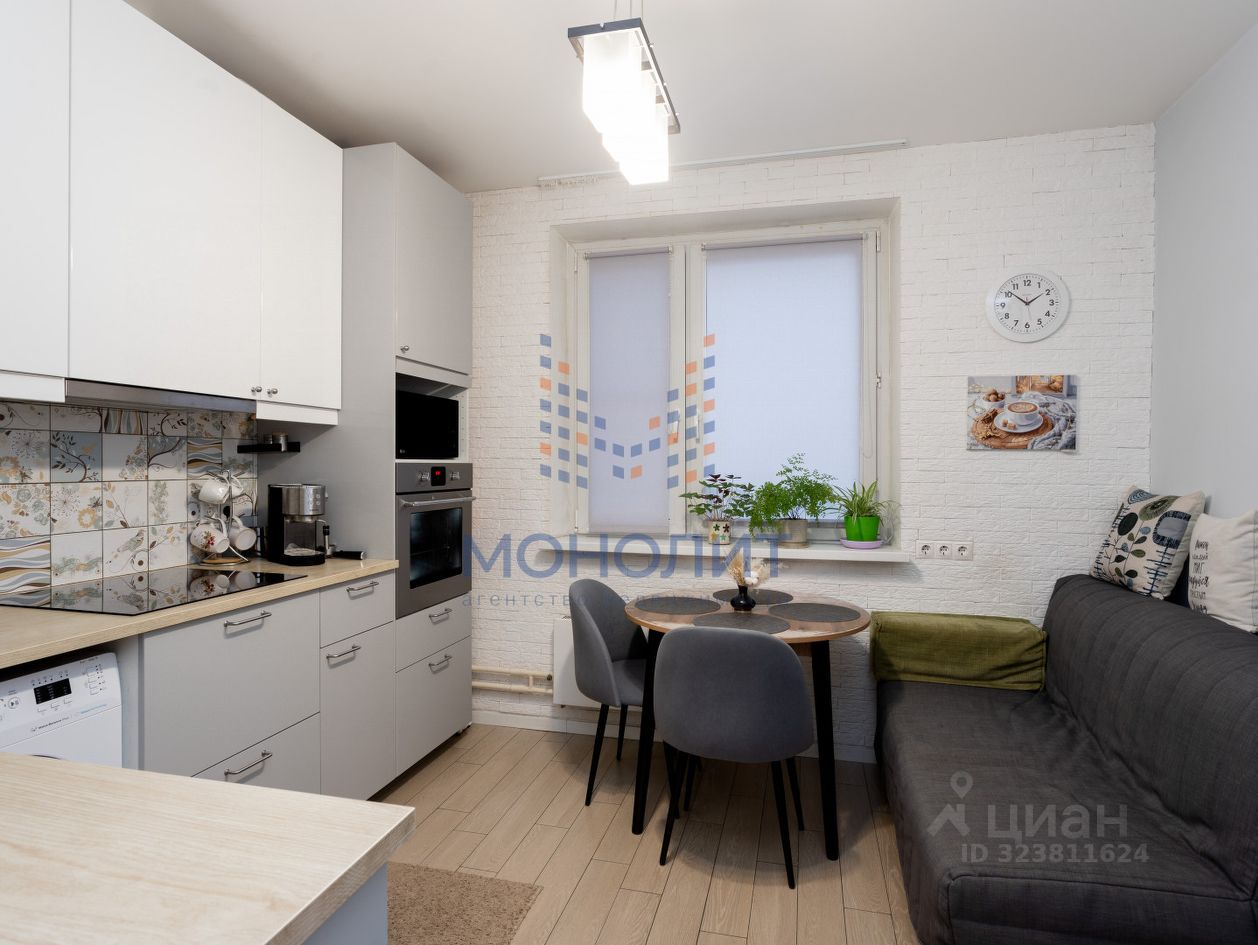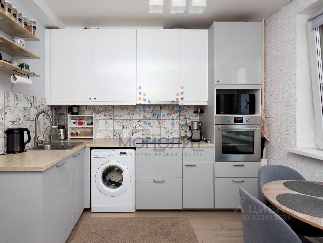 - Просторная кухня с кухонным гарнитуром и техникой .