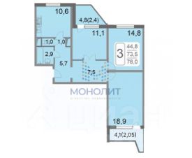 Просторная, светлая трехкомнатная квартира в ЖК " Кварталы 21/19" - современный жилой комплекс комфорт-класса !