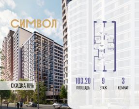 Продается 3-комнатная квартира от застройщика: общая площадь 103.20 м², жилая 47.30 м², кухня 25.10 м², 9-й этаж, жилой квартал "Гордость", корпус 36 (секция 3). Срок сдачи: 2 квартал 2029 года.