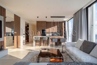 • Планировочное решение: просторная кухня-гостиная, кладовая на кухне, 2 отдельных спальни гардеробными, два с/у, большая кухня-гостиная, постирочная, прихожая зона с гардеробом. Мебель от известных европейских производителей остается новому владельцу.