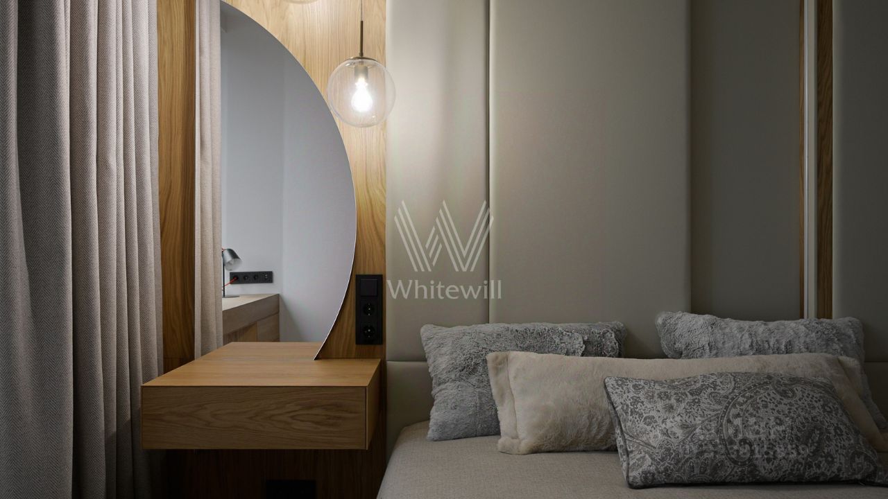 Функциональная планировка включает кухню-гостиную с обеденной зоной и эко-камином, мастер-спальню со своей ванной комнатой и гардеробной, вторую спальню, гостевой санузел и холл. Благодаря панорамному остеклению , и увеличенному количеству окон , пространство наполнено естественным светом и теплом.