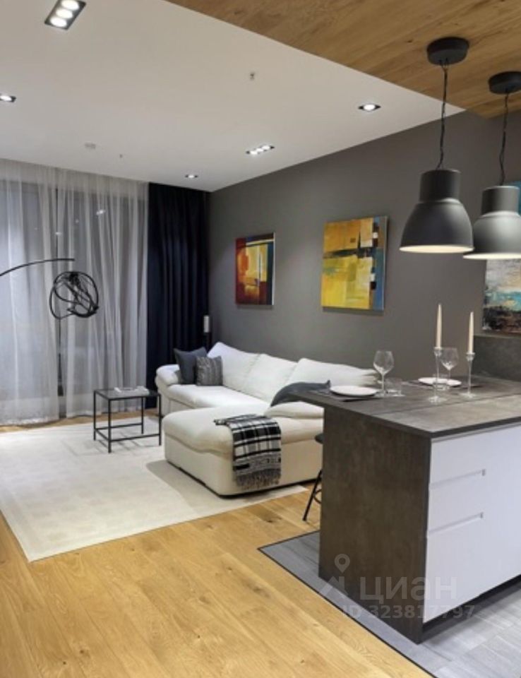 Планировка: просторная студия (кухня+гостиная), отдельная спальня, гардеробная, санузел с ванной, просторный холл. Квартира укомплектована всей необходимой техникой лучших производителей: холодильник, посудомоечная машина, духовой шкаф и варочная панель, стиральная машина, чайник, микроволновая печь, одно ТВ с функцией Smart TV