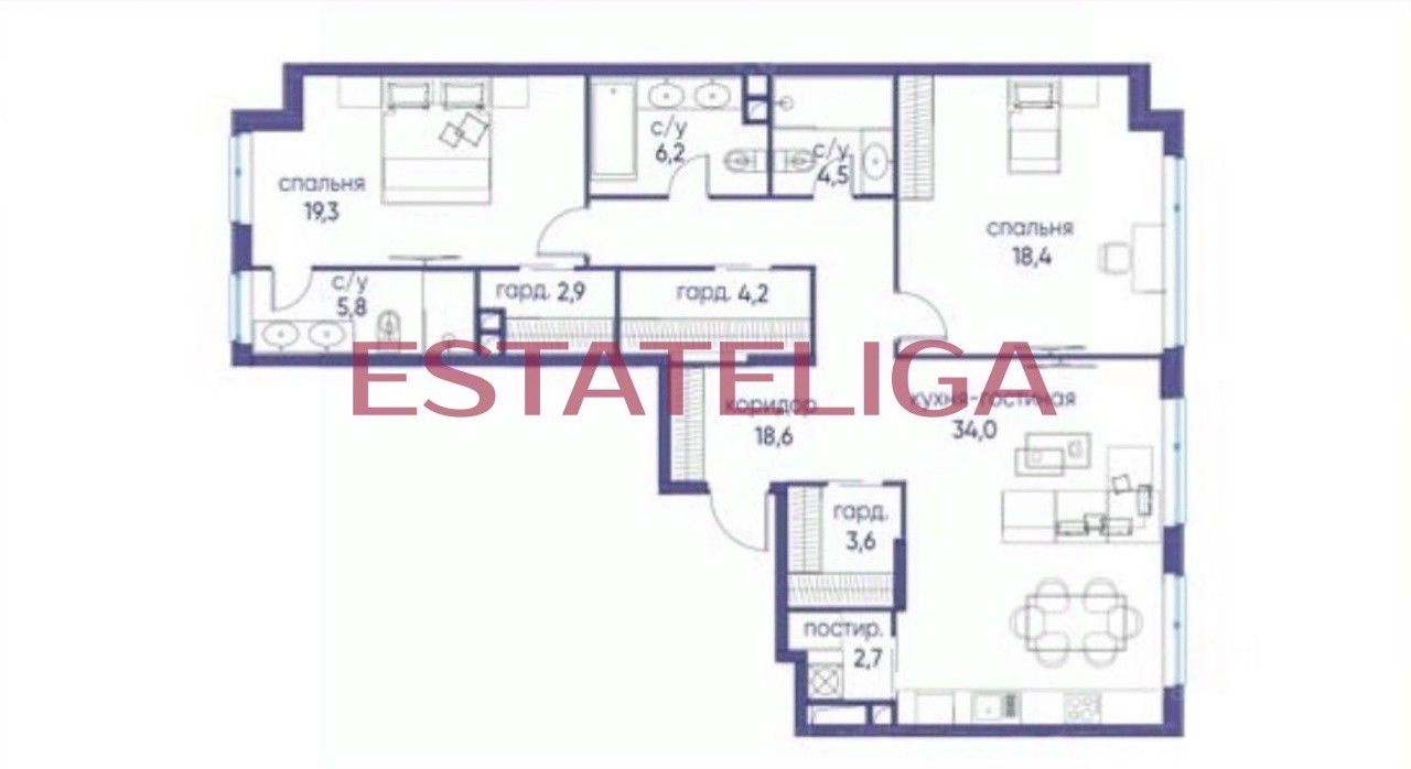 Id 58148. РОСКОШНАЯ 3-х КОМНАТНАЯ В 4 КВАРТАЛЕ ОСТРОВА!