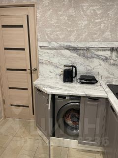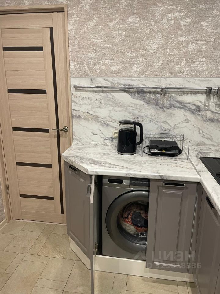Кухня просторная 9.9 кв.м., в кухонном шкафу спрятана стиральная машинка.