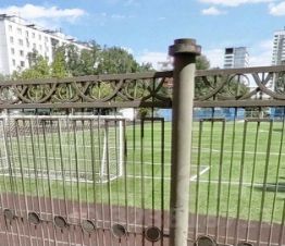 Чистый, отремонтированный подъезд, новый лифт, есть пандус для колясок, в доме проведен капитальный ремонт с заменой инженерных коммуникаций. Во дворе дома большая детская площадка, чуть дальше еще 2 площадки и школа.