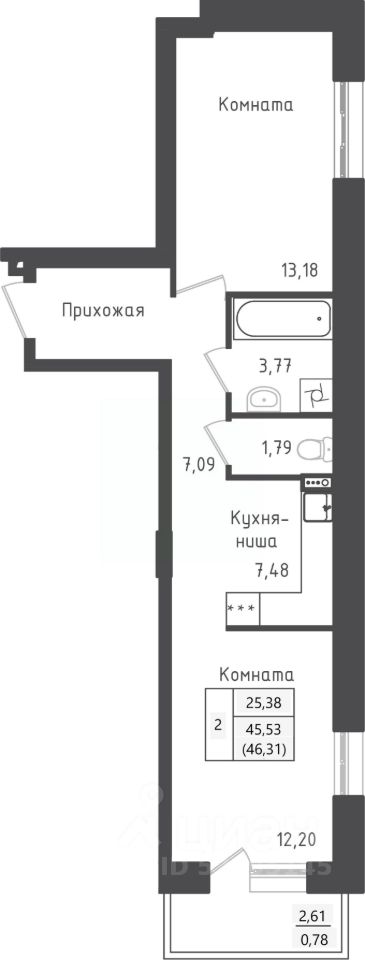Продаётся 1-комнатная квартира в строящемся доме (Дом 1), срок сдачи: I-кв. 2026, общей площадью 46.31 кв.м., на 1 этаже. Квартал жилой застройки "Зеленый Оазис-Город"