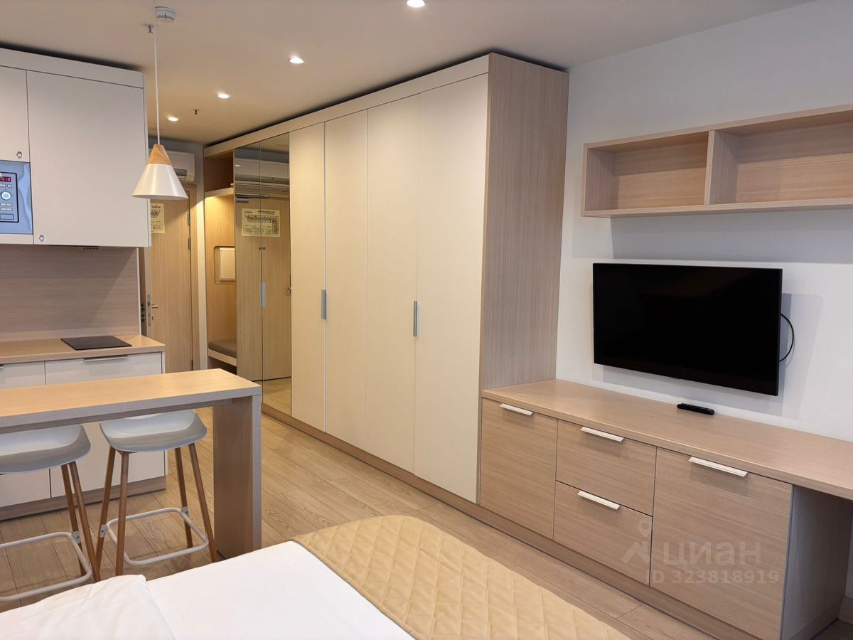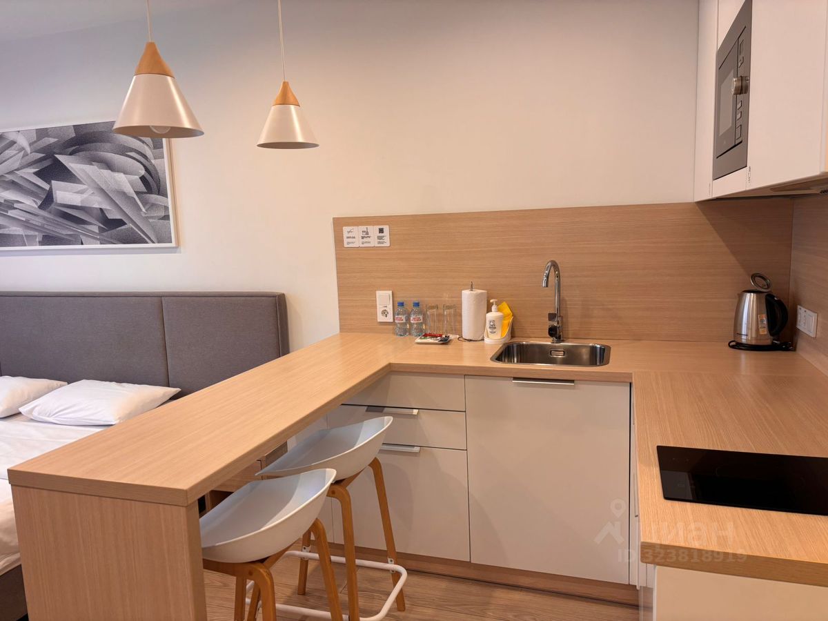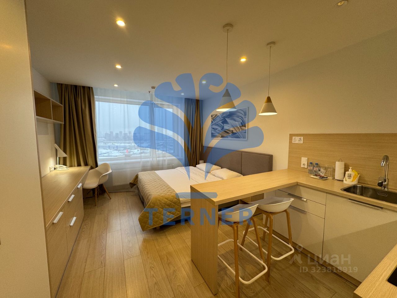 Этаж 18 в 24-этажном монолитном доме. Общая площадь: 26,2 кв. м., санузел совмещенный, стиральная машина расположена на кухне. В квартире произведен евро-ремонт, укомплектована необходимой мебелью и техникой. . Парковка автомобиля в подземном паркинге или около дома.