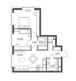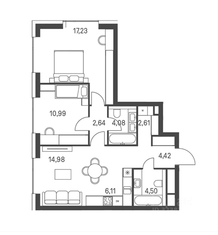 Евро 3-комнатная квартира в жилом комплексе Бизнес-класса Moments. Планировка: кухня-гостиная; 2 изолированные спальни; 2 санузла; гардеробная; холл. Общая площадь 67,56 кв.м. Панорамные окна. Виды из окон в противоположную сторону от строительства 2 очереди. Отделка white box.