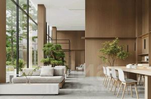 Концепция Moments - архитектура для жизни в моменте. Застройщик привлёк для создания архитектурного облика одно из ведущих бюро KAMEN ARCHITECTS. Отделка лобби в светлых тонах с использованием природных материалов. Высота потолков до 5,7 метров. А также в комплексе предусмотрены консьерж сервис, зоны лаунж и коворкинга, колясочные комнаты, лапомойки для питомцев, двухуровневый подземный паркинг. Установлены современные системы видеонаблюдения.