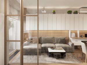 Кровать, которая убирается в стену одним легким движением и высвобождает комнату для занятий спортом, творчеством или встречи гостей.