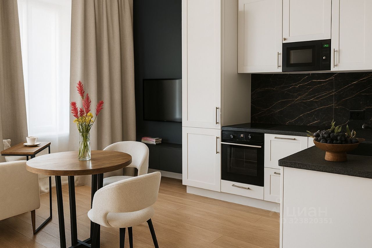 В квартире произведён капитальный ремонт с возведением всех коммуникаций, электрики. Создана функциональная планировка с зоной отдыха, спальной зоной, красивым совмещенным санузлом, укомплектованной техникой кухней и продуманными системами хранения. Вся мебель и техника останется новым владельцам.