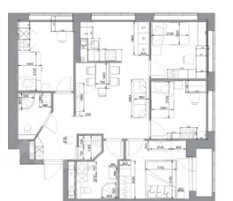 Планировка: шесть окон, четыре изолированные комнаты, кухня/гостиная 27 м2, два совмещённых санузла, гардеробная, лоджия.