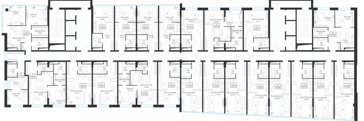 Продаются 2-комнатные апартаменты 58.87 кв.м. на 4-м этаже 20-этажного комплекса.