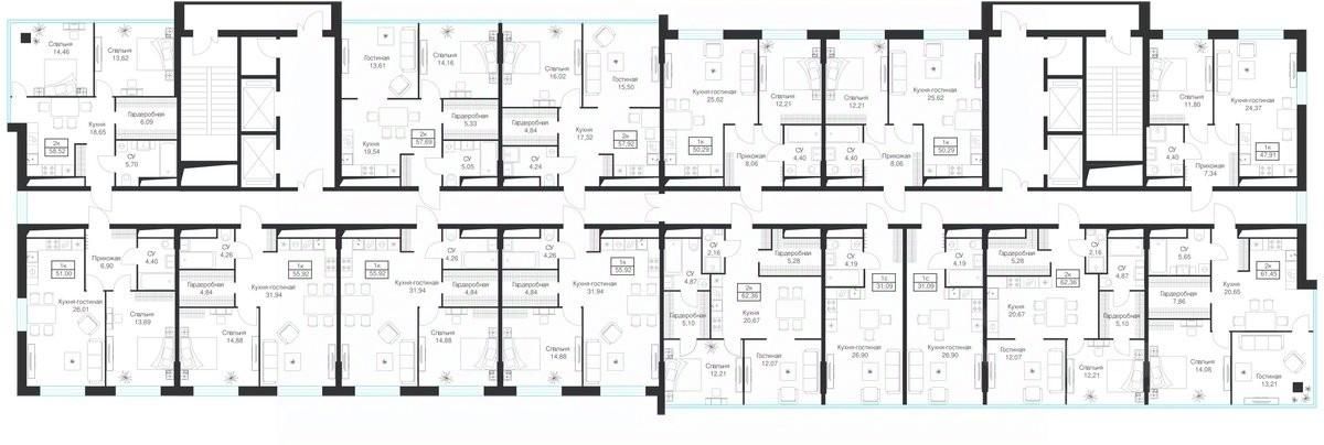 Продаются 2-комнатные апартаменты 61.45 кв.м. на 9-м этаже 20-этажного комплекса.