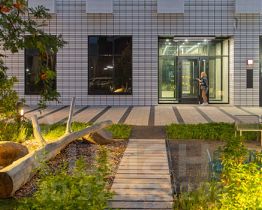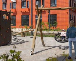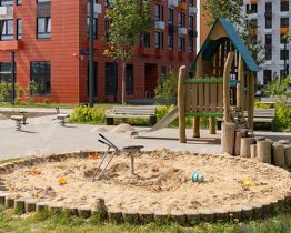 В проекте предусмотрена медленная зона для электросамокатов — с 7 утра до полуночи при въезде на территорию квартала скорость электросамокатов автоматически снижается до 15 км/ч. Артикул 976501 (Застройщик АО "Специализированный застройщик "Волжский парк"")