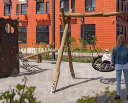 В проекте предусмотрена медленная зона для электросамокатов — с 7 утра до полуночи при въезде на территорию квартала скорость электросамокатов автоматически снижается до 15 км/ч. Артикул 976662 (Застройщик АО "Специализированный застройщик "Волжский парк"")