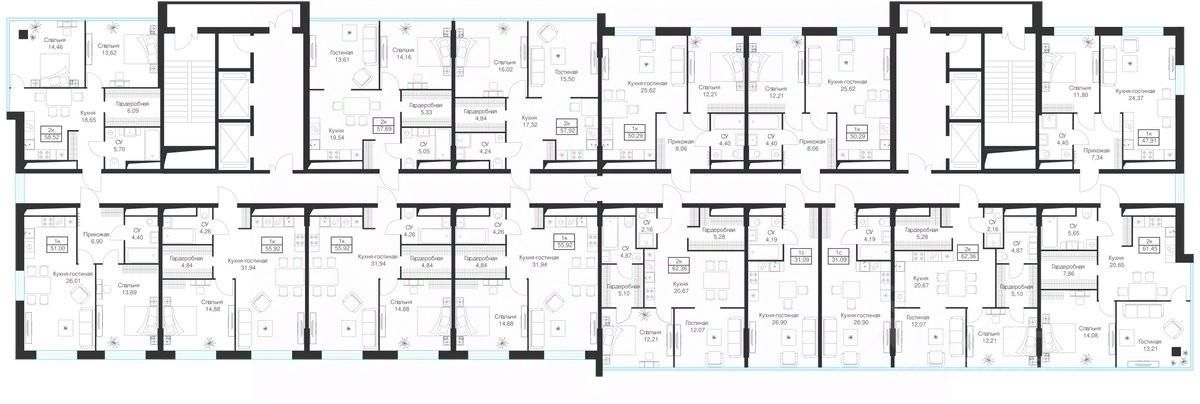 Продаются 1-комнатные апартаменты 50.29 кв.м. на 10-м этаже 20-этажного комплекса.