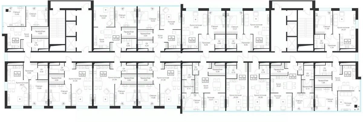 Продаются 2-комнатные апартаменты 58.52 кв.м. на 11-м этаже 20-этажного комплекса.