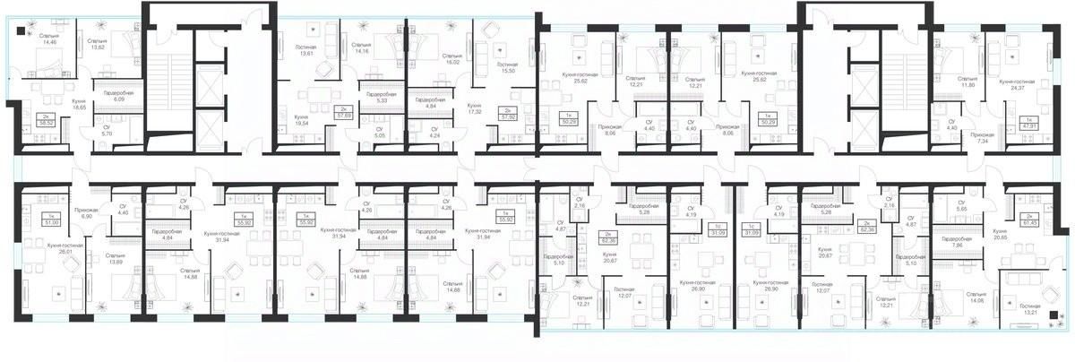 Продаются 2-комнатные апартаменты 58.52 кв.м. на 11-м этаже 20-этажного комплекса.
