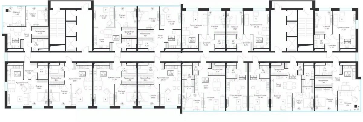 Продаются 2-комнатные апартаменты 58.52 кв.м. на 12-м этаже 20-этажного комплекса.