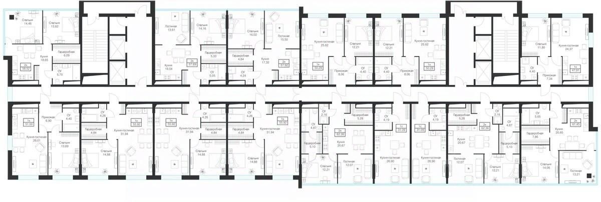 Продаются 1-комнатные апартаменты 51 кв.м. на 13-м этаже 20-этажного комплекса.