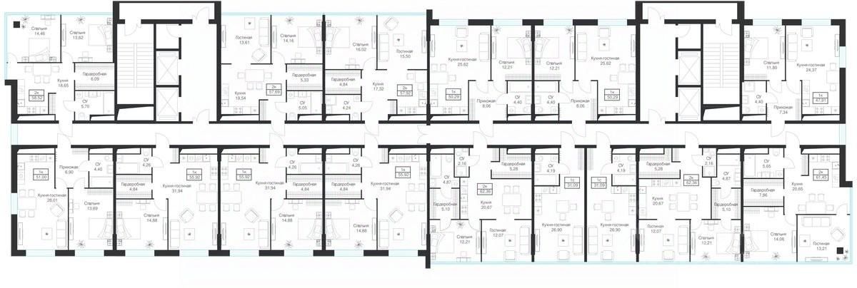 Продаются 1-комнатные апартаменты 50.29 кв.м. на 13-м этаже 20-этажного комплекса.