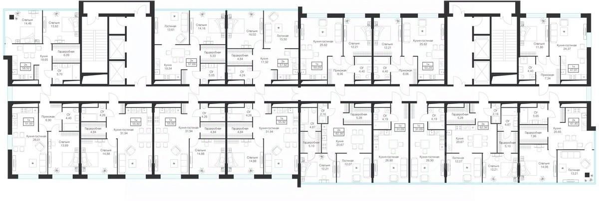 Продаются 1-комнатные апартаменты 50.29 кв.м. на 13-м этаже 20-этажного комплекса.
