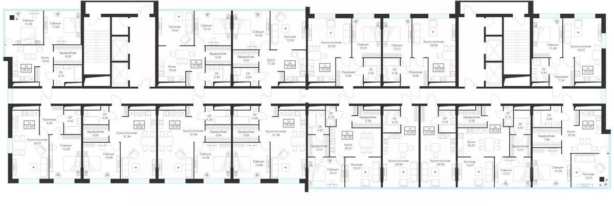 Продаются 2-комнатные апартаменты 58.52 кв.м. на 14-м этаже 20-этажного комплекса.