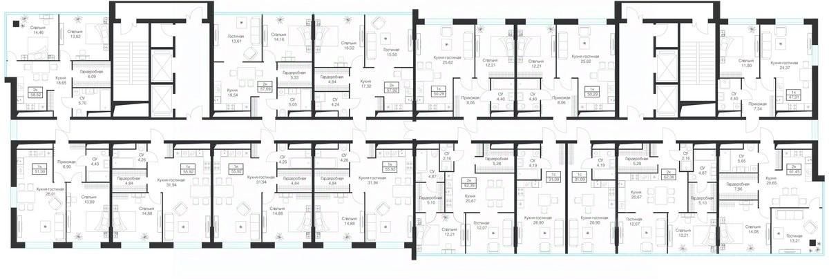 Продаются 2-комнатные апартаменты 58.52 кв.м. на 16-м этаже 20-этажного комплекса.