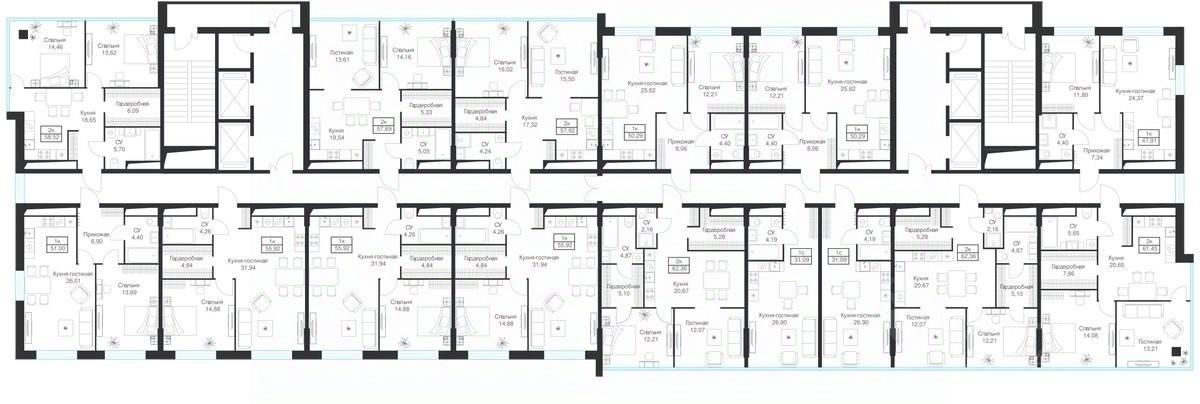 Продаются 1-комнатные апартаменты 50.29 кв.м. на 16-м этаже 20-этажного комплекса.